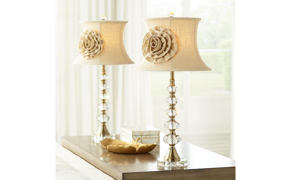 Hilary Traditional Glam Luxury Table Lamps Set Of 2 Crystal Gold Fabric Rose Bell Shade Decor For Living Room Bedroom House Bedside Nightstand Home Office Entryway Family Vienna Full Spectrum Amazon Com