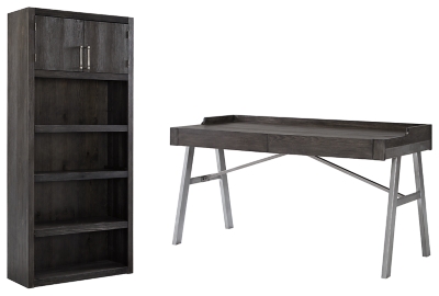 Ashley Signature Design Raventown H467 44 Contemporary Metal Wood Home Office Desk In Grayish Brown Finish Dunk Bright Furniture Table Desks Writing Desks