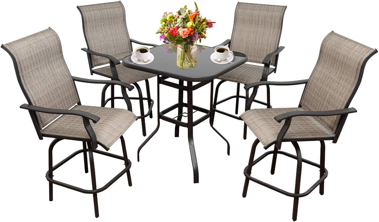 Amazon Com 5 Piece Outdoor Swivel Bar Height Dinning Set Metal High Top Patio Bar Chairs Set Of 4 1 Table For Bistro Lawn Backyard 5 Garden Outdoor