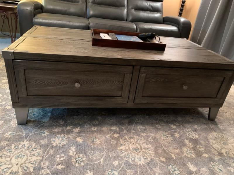Chazney End Table By Ashley. Signature Design by Ashley Chazney Lift Top Cocktail Table Rustic Brown. Celebrating the lighter side of modern industrial style the Chazney lift top coffee table is the best in form meets function.