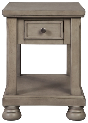 Forever classic design details-inlaid panels silvertone patina hardware and bun feet-are so easy to love. Lettner End Table T733-3 Gray Signature Design by Ashley. Two-tone aesthetic is deliciously different.